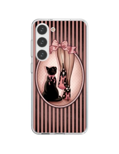 Coque iPhone 15 Plus Lady Jambes Chien Bulldog Dog Rose Pois Noir Transparente -...