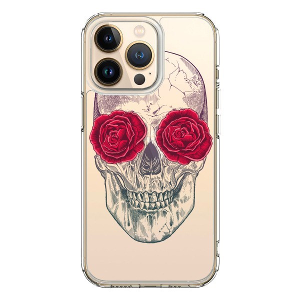 Coque iPhone 13 Pro Tête de Mort Rose Fleurs Transparente - Rachel Caldwell