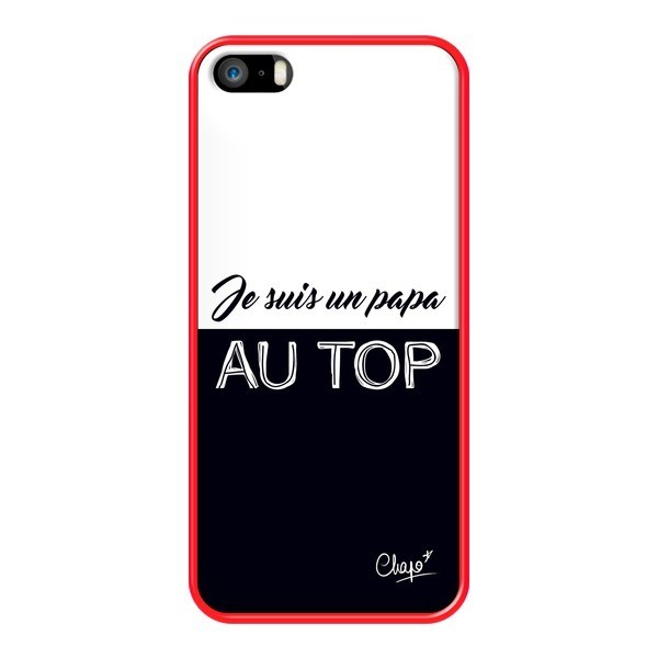 Coque iPhone 5/5S et SE Je suis un Papa au Top Noir - Chapo