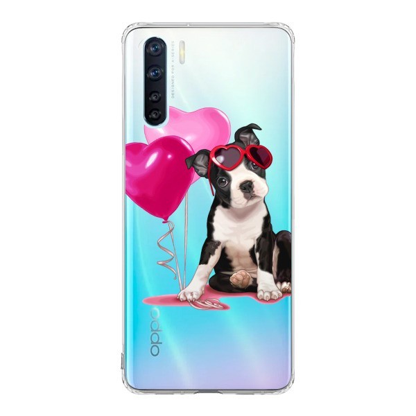 Coque Oppo Reno3 / A91 Chien Dog Ballon Lunettes Coeur Rose Transparente - Maryline Cazenave