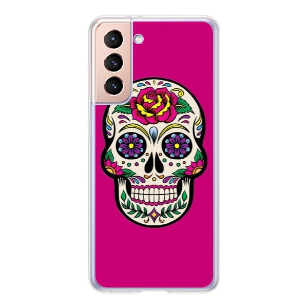 Coque Samsung Galaxy S21 5G Tête de Mort Mexicaine Rose Fushia - Laetitia