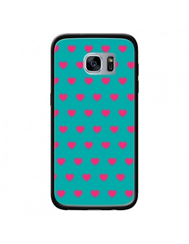 Coque Coeurs Roses Fond Bleu pour Samsung Galaxy S7 - Laetitia