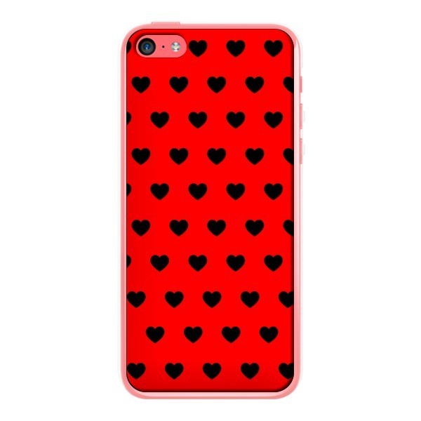 Coque iPhone 5C Coeurs Noirs Fond Rouge - Laetitia