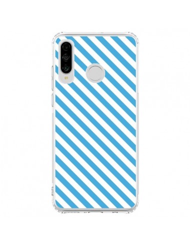 Coque Huawei P30 Lite Bonbon Candy Bleue et Blanche Rayée - Nico