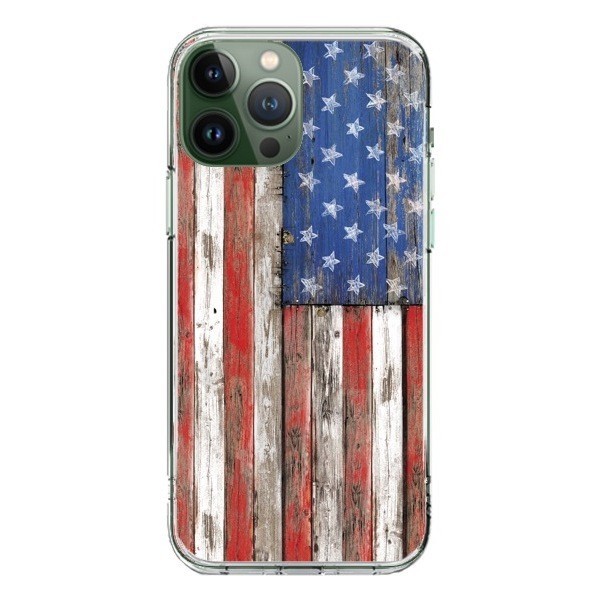 Cover iPhone 13 Pro Max Bandierq USA America Vintage Legno Wood - Maximilian San