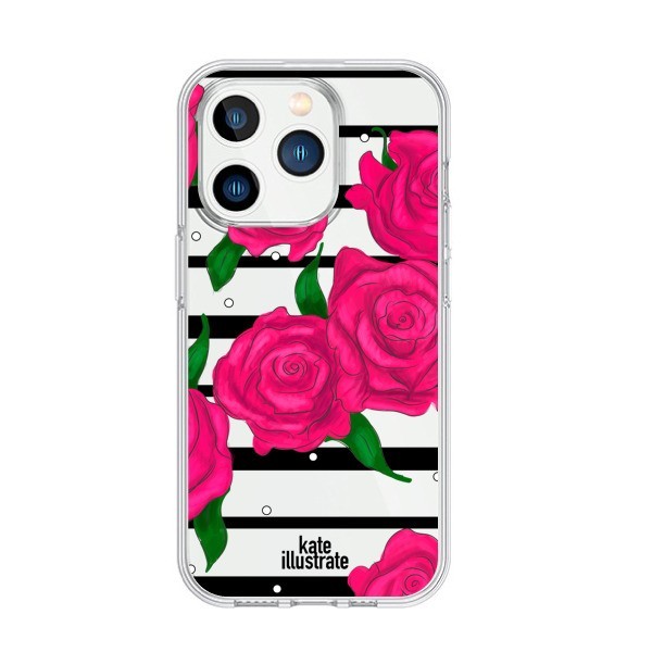 Cover iPhone 15 Pro Rosa Fiori Trasparente - kateillustrate